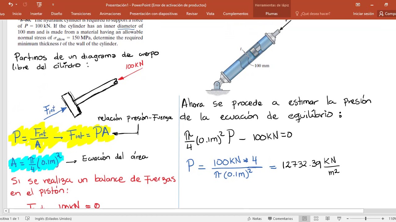 HOLA ESTUDIOSOS DE LA INGENIERÍA soy javier carpintero y en este video explicaré cómo se calcula el espesor de pared de un sistema pistón-cilindro sometido.