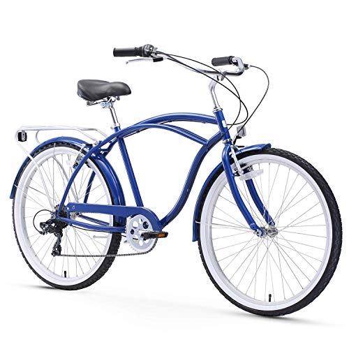 Sixthreezero Around The Block Men S 26 7 Speed Beach Cruiser Bicycle With Rear Rack Navy Amazon In Sports Fitness Outdoors